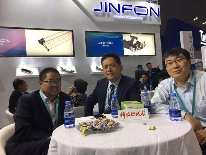 記者來(lái)到青島金匯豐展臺(tái),遇到俄羅斯客戶到展位來(lái)訪并現(xiàn)場(chǎng)訂購(gòu)金匯豐7軸聯(lián)動(dòng)全伺服智能粗紗機(jī), 金匯豐的畢濤總經(jīng)理告訴記者:青島金匯豐機(jī)械有限公司是國(guó)內(nèi)專業(yè)生產(chǎn)全伺服電腦粗紗機(jī)的廠家,上海紡機(jī)展展示兩款新研發(fā)的粗紗機(jī)。一款是JHF1718七軸聯(lián)動(dòng)全伺服棉紡電腦粗紗機(jī),另一款是JHFB1618六軸聯(lián)動(dòng)全伺服毛紡電腦粗紗機(jī),這兩款都是新產(chǎn)品,已經(jīng)得到客戶的青睞。