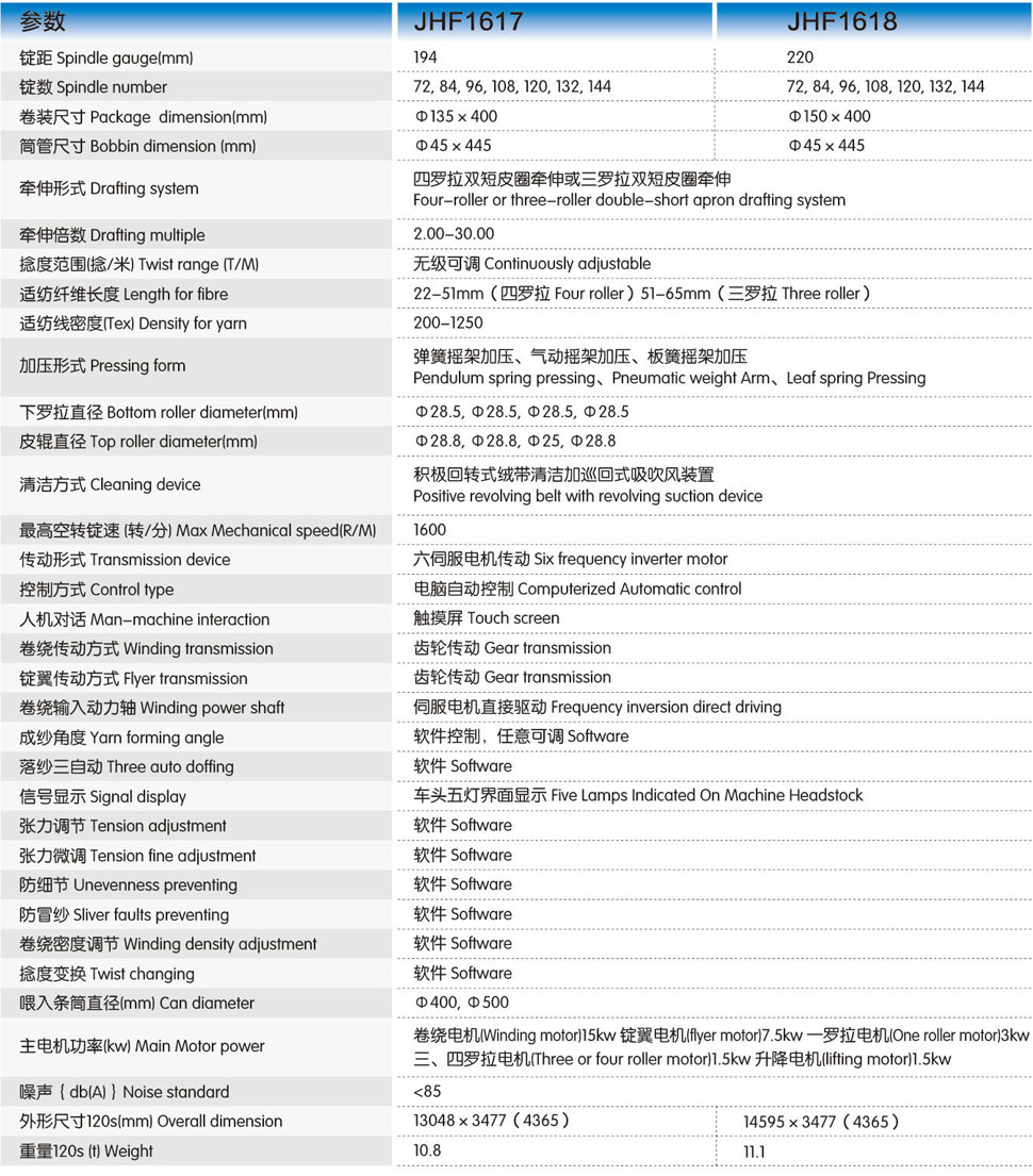 JHF1617/JHF1618全伺服棉紡電腦粗紗機(jī),采用五伺服電機(jī)驅(qū)動(dòng),結(jié)構(gòu)簡(jiǎn)單,自動(dòng)化程度高,設(shè)有斷電保護(hù)裝置,換向