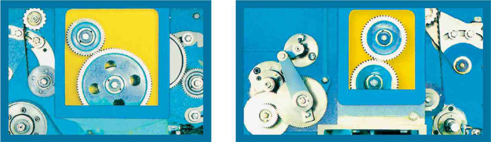 主電機采用雙繞組雙速電機,平皮帶傳給壓輥,同時由同步帶齒輪傳動其他部分,保證傳動比準(zhǔn)確,使運轉(zhuǎn)過程中平穩(wěn)、噪音低。車頭車尾采用油浴斜齒輪箱,牽伸采用成對交換技術(shù),確保牽伸質(zhì)量。